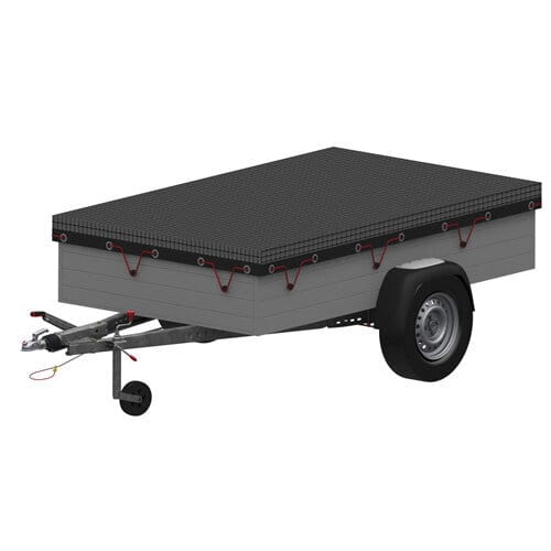 AL-KO kuormaverkko tiheäsilmäinen 300×180 polyeteeni-kudos reunat taitettu missä purjerenkaat 40cm välein joissa kulkee elastinen sidontanauha