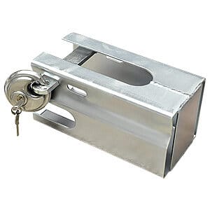 Peräkärryn kytkinlukko salvalla ja riippulukolla.Sopii useimpiin jarruttomiin ja jarrullisiin kuulakytkimiin.Sinkitty pelti