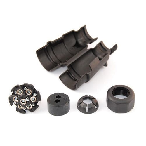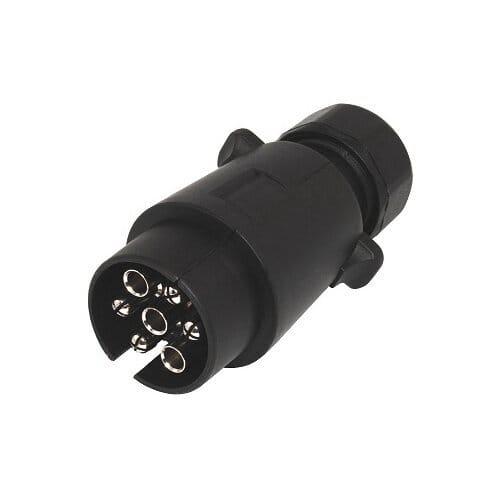 "Perävaunun muovi pistoke, 7-napainen, 12V. Painettava ""fast clip"" kuori ja ruuvikiinnitteiset johtoterminaalit. Läpivientikumi 2:lle johdolle. Ei kasattu valmiiksi. Sopii mainiosti pistokkeeksi esim. Jokon johtosarjoihin (15480,15481)."Jännite: 12V
