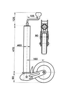 Vahva taittuva nokkapyörä joka on suunniteltu varsinaisesti jarrullisiin perävaunuihin. Umpikumilla ja teräsvanteella. Kiinnike rungossa kiinni.