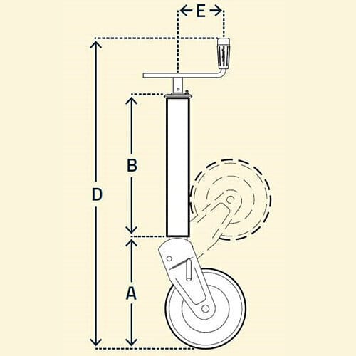 Vahva, taittuva Simol nokkapyörä jarrullisiin perävaunuihin sekä maatalous trailereihin. Nokkapyörän kiinnitykseen löytyy hitsattava kiinnike (09070/09071). Punainen pohjamaali.Kantavuus: 1100kg,pyörä: pelti 320x80mm, vanne: pelti, putki: 70mm, nosto: 300mm, putki: 460mm, kok.korkeus: 1000mm