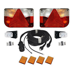 Valosarja 12V 6m perävaunuun. Helppo ja nopea asentaa. Johtosarjan pääjohto 6m ja äärivalojohdot 2x4m DC. Etuäärivalojen liittäminen sarjaan DC pikaliittimin. Valosarja sis. kaikki polttimot. 7-nap pistoke valmiiksi asennettu. Sis tuotteet: 15460, 15461, 15580, 15099×2, 16104×2, 15153×4.Jännite: 12VNettopaino: 2,5 kg
