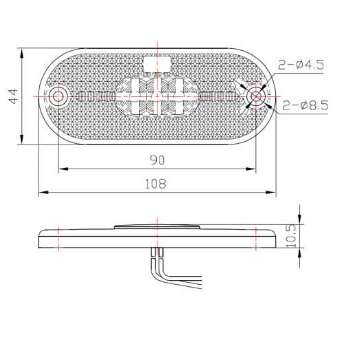 Led sivuvalo 12V keltainen. Sopii perävaunuihin, venetrailereihin jne. Eu hyväksytty.Mitat: 108x44x11mmKiinnityslev: 90mmJännite: 12V