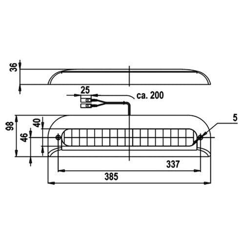 Jokon led LED lisäjarruvalo ZHBL 03 12V valkoisella muovikehyksellä pinta-asennusta varten ja 200mm liitinjohdolla (abico liittimet).Eu Hyväksytty.Mitat: 385x92Jännite: 12V