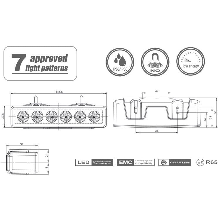 Keltainen led Hälytysvilkku (led ruuhkavilkku) 12-24V. 7 valokuviota, iskunkestävä polykarbonaatti kuori. Vesitiivis IP68.ECE R65 ja R10 sekä EMC hyväksytty. Takuu 2 vuotta.Jännite: 10-33VVirrankulutus: Max 7,3W