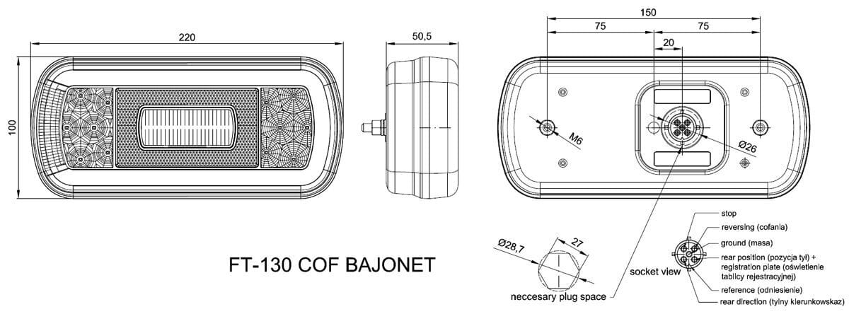 Led takavalo 12-24V. Sis. Taka-/jarruvalo, suuntavalo, sumuvalo ja rek.kilvenvalo. Liitetään johtosarjaan 5-nap. pikaliittimen avulla.Mitat: 100x220x51mmKiinnityslev: 150mmJännite: 12-24V