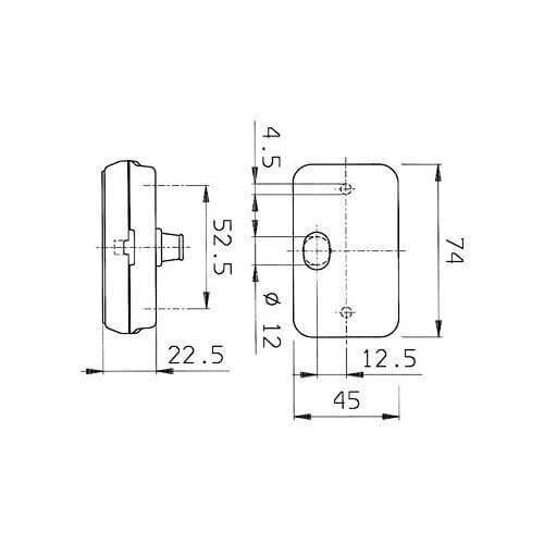 Jokon S130 punainen äärivalo. Ei sis. polttimoa. Sopiva polttimo sukkula polttimo C5W (15702).Eu Hyväksytty.Mitat: 74x45x22.5mmKiinnitysreikien väli: 52.5mm