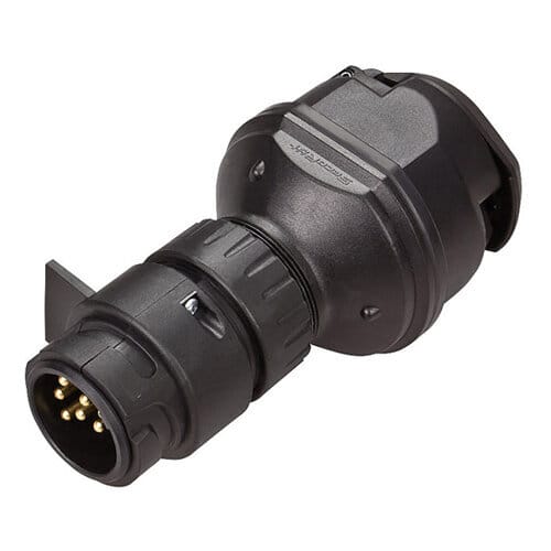 Adapteri led valoilla varustetun perävaunun ja CAN-Bus ohjatun vetoauton välille ehkäisemään perävaunun led-valojen häiriöitä.Adapterin pistokkeet: Auto: 13-napainen ja perävaunu: 7-napainen.Jännite: 12V