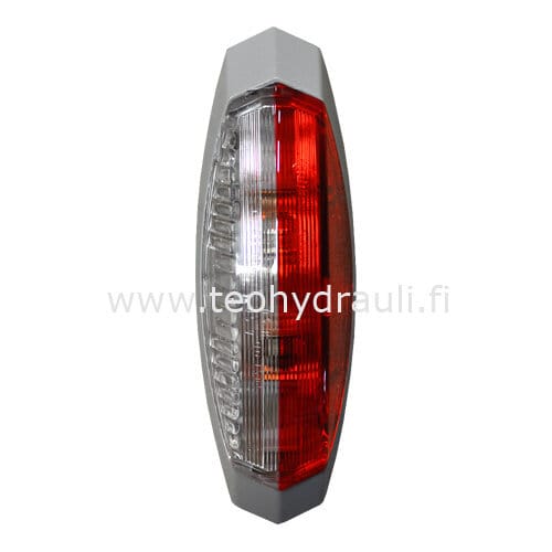 Hella puna- / valkoinen äärivalo mm. asuntoautoihin ja asuntovaunuihin. Vasemman puolen lamppu. Sis. polttimo (C5W/12V).Käytössä mm. Fendt, Hymer ja Knaus caravan autoissa ja vaunuissa.Mitat: 122,2×39,2×28,6mmJännite: 12V
