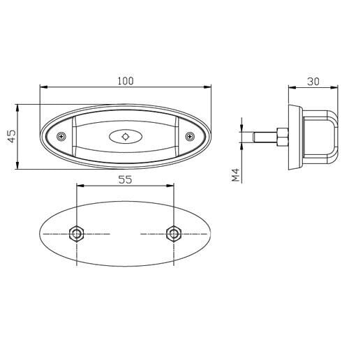 Pun / valkoinen äärivalo perävaunuihin jne.Mitat: 100x45x30mmKiinnityslev: 55mm