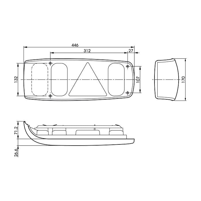 Talmu 1177 Caraluna yhdistelmätakavalo oik. caravan ja asuntovaunuihin jne. Sis. taka-, jarru-, suunta-, peruutus-, sivuvalo, kolmioheijastin ja polttimot.Sama lamppu esiintyy Suomen ulkopuolella nimellä Hella Caraluna.Mitat: 446x170x77,8mmJännite: 12V