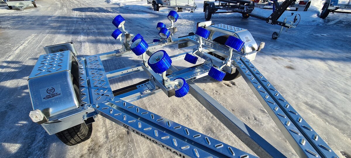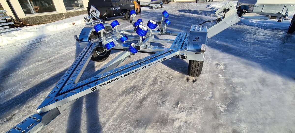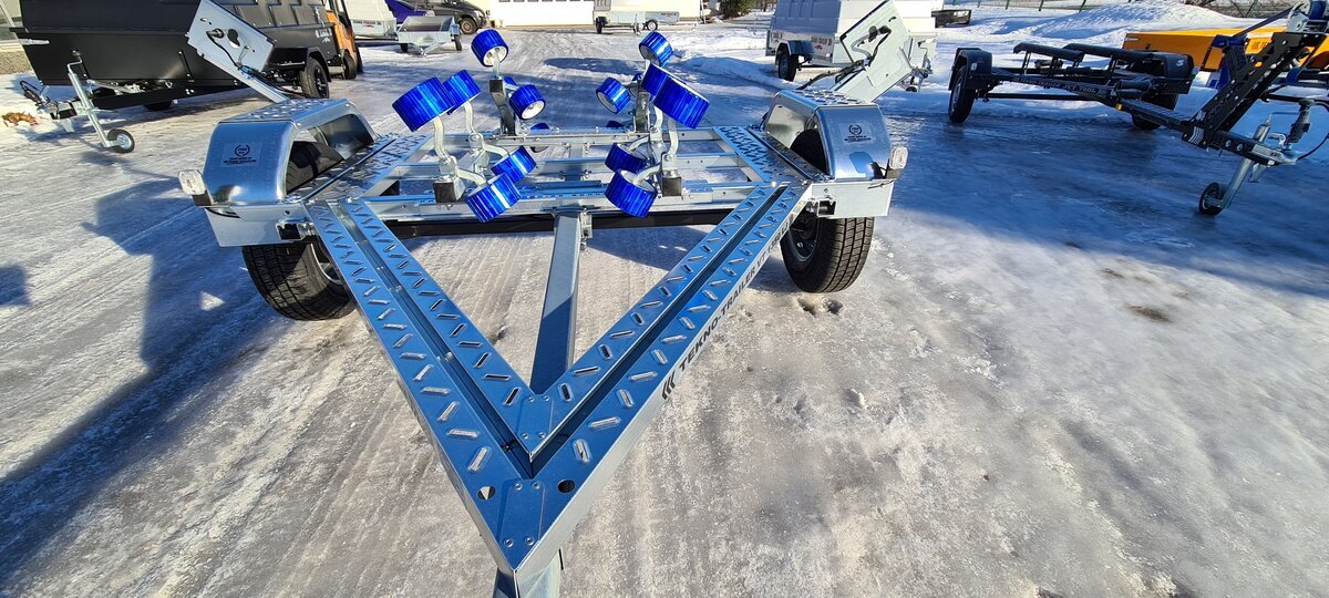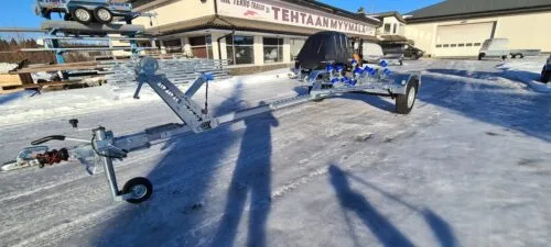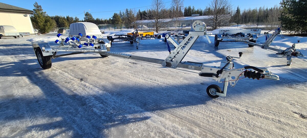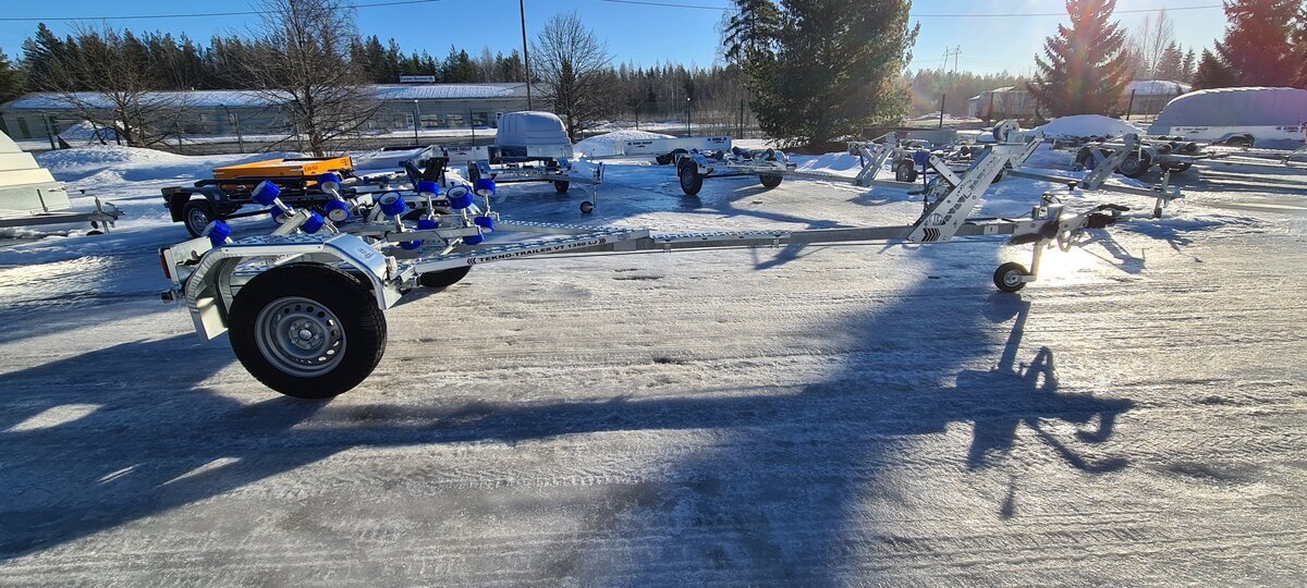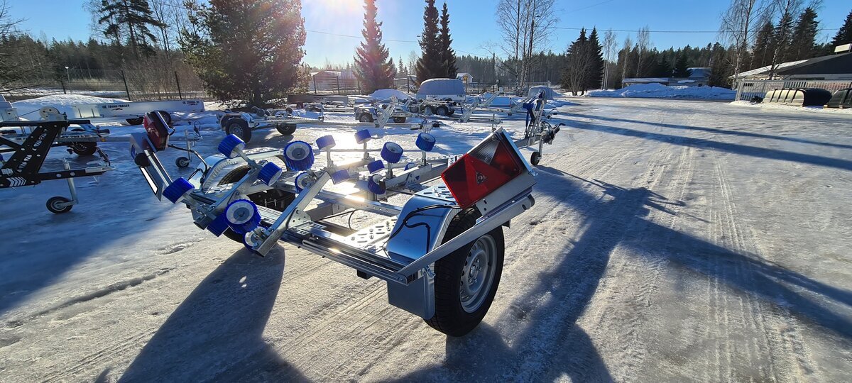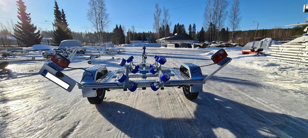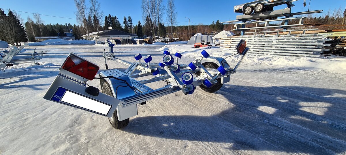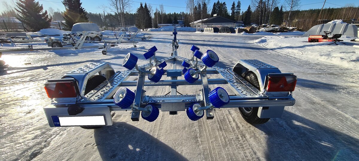 Vinssitelineessä monipuoliset pituus- ja korkeussäädöt. Sivutuet umpikumipyörillä, leveys- ja korkeussäädöillä. Kaikki trailerin säädöt voidaan tehdä vaivattomasti ilman avaimia.