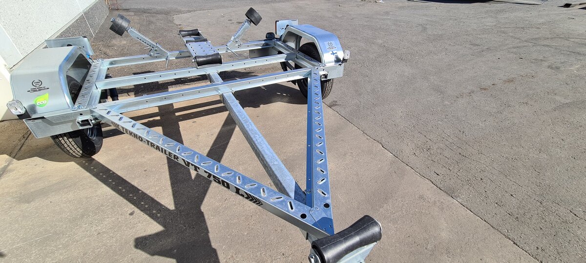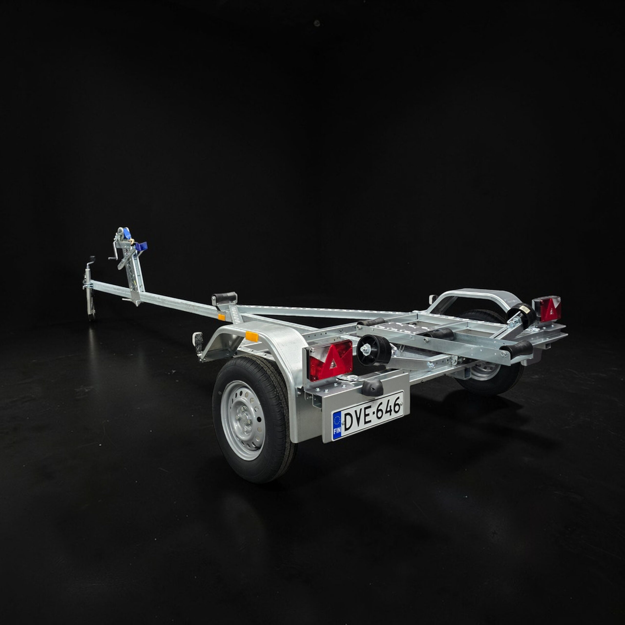ECO-malliston perustraileri venekuljetukseen. Venetrailerissa on karhennetut palkinpäällystät, irrotettavat valot sekä liinavinssi.