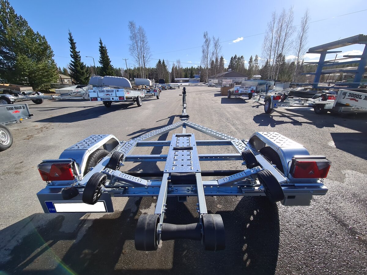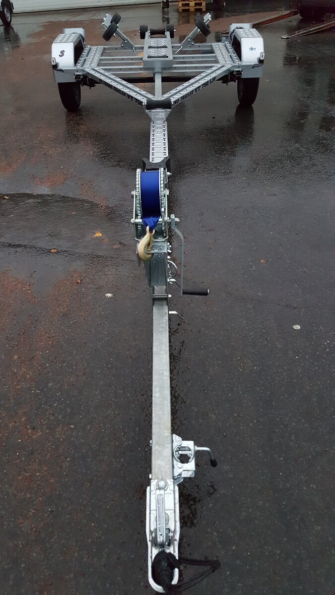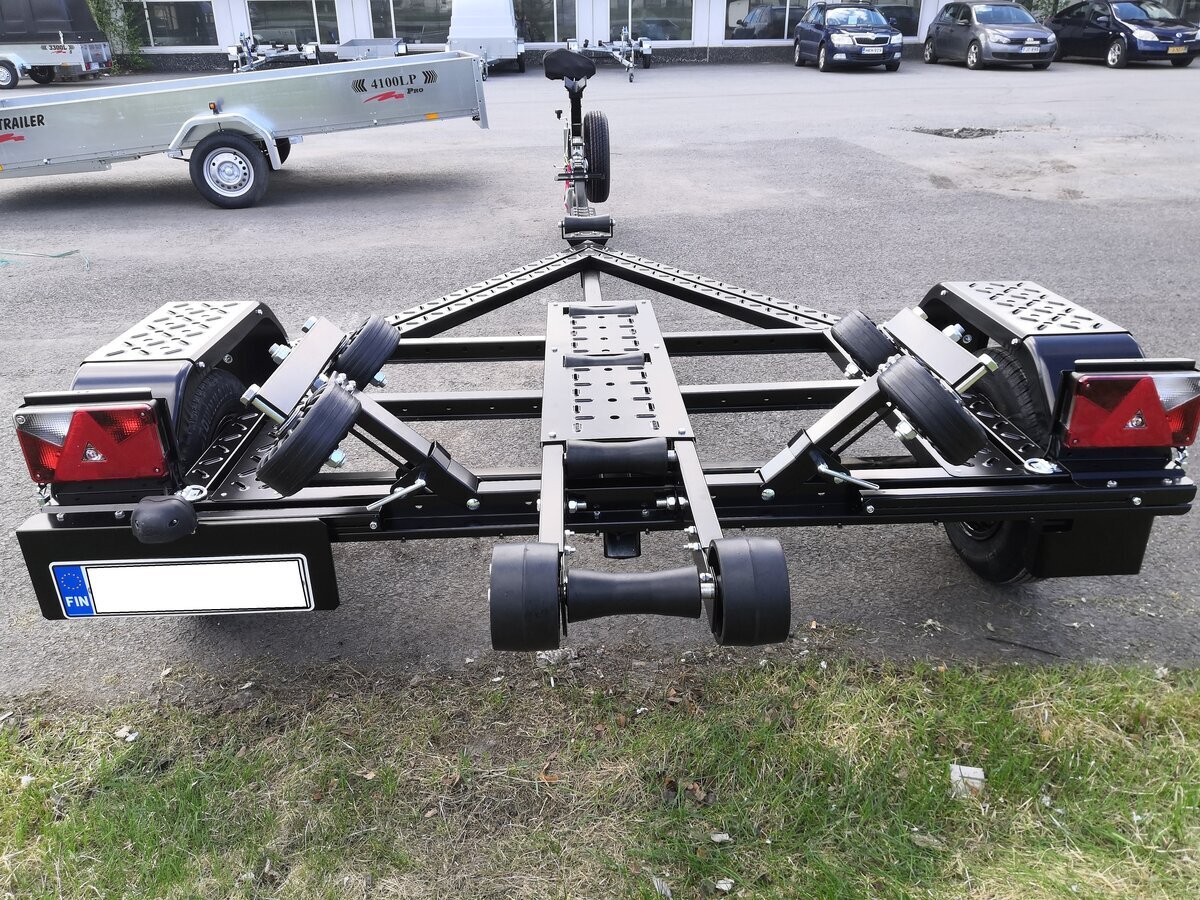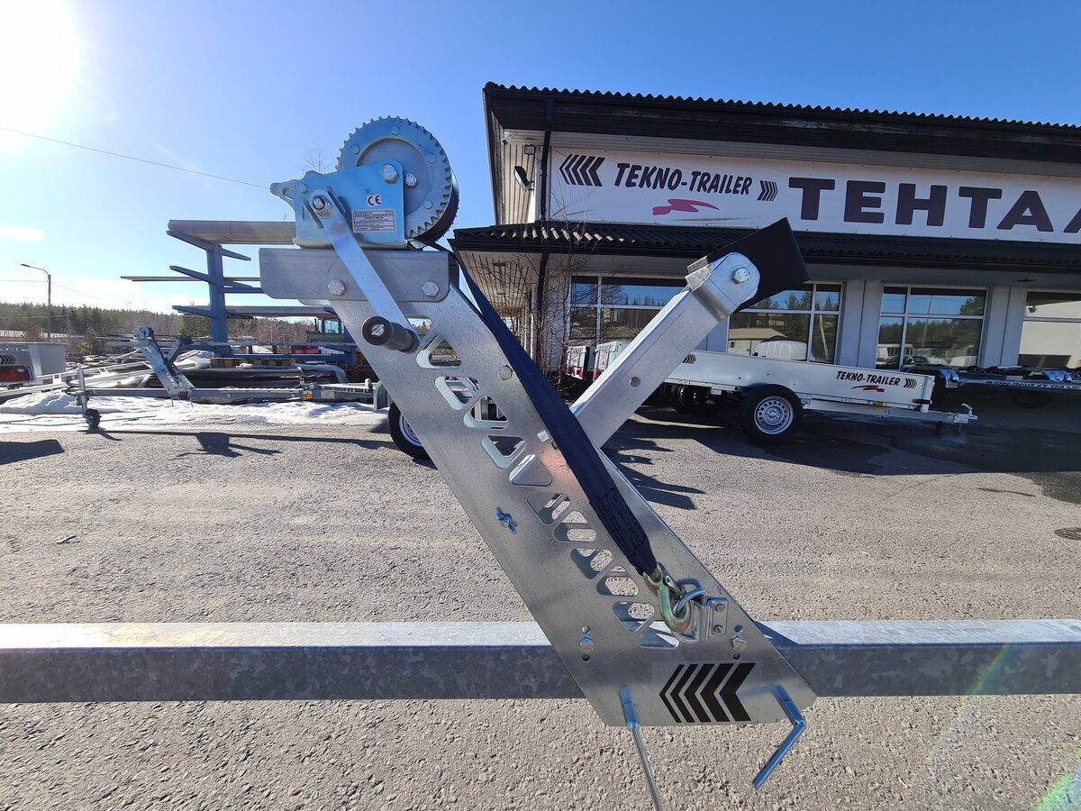 Vinssitelineessä monipuoliset pituus- ja korkeussäädöt. Sivutuet umpikumipyörillä, leveys- ja korkeussäädöillä. Kaikki trailerin säädöt voidaan tehdä vaivattomasti ilman avaimia.