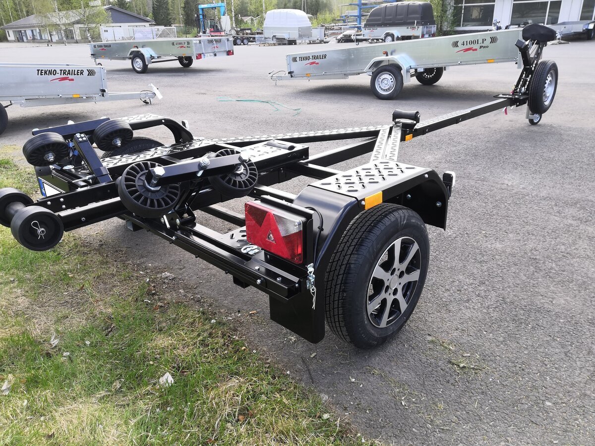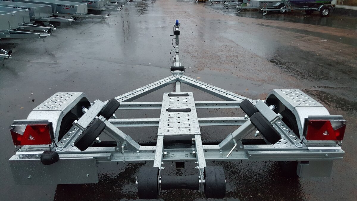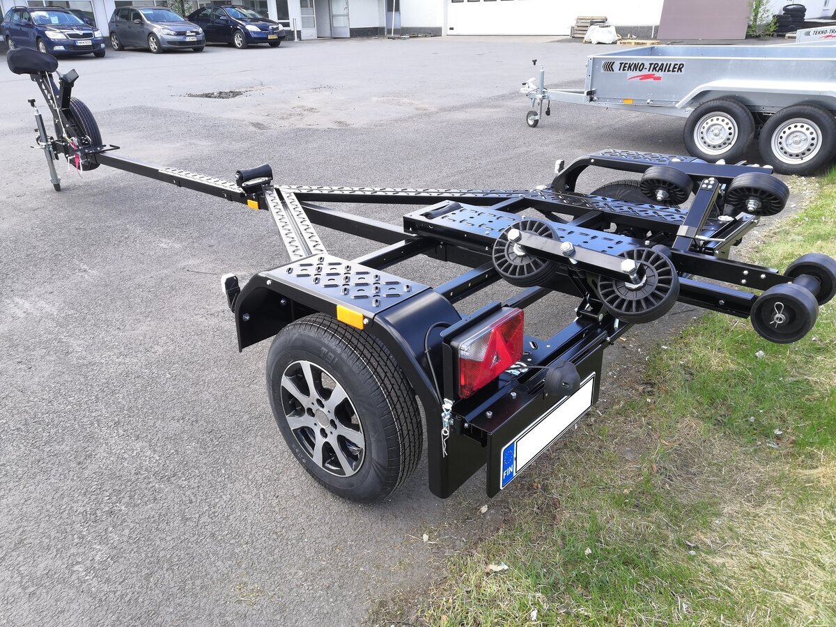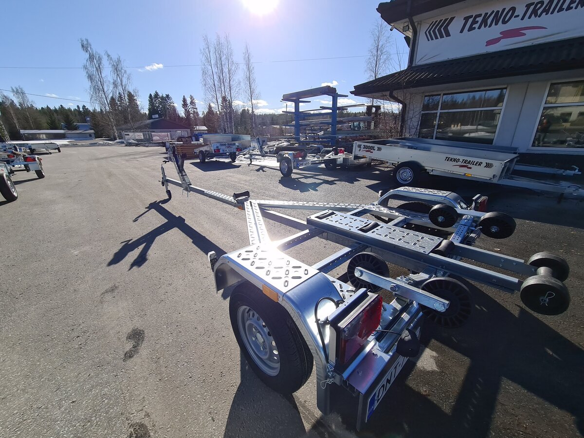 Vinssitelineessä monipuoliset pituus- ja korkeussäädöt. Sivutuet umpikumipyörillä, leveys- ja korkeussäädöillä. Kaikki trailerin säädöt voidaan tehdä vaivattomasti ilman avaimia.