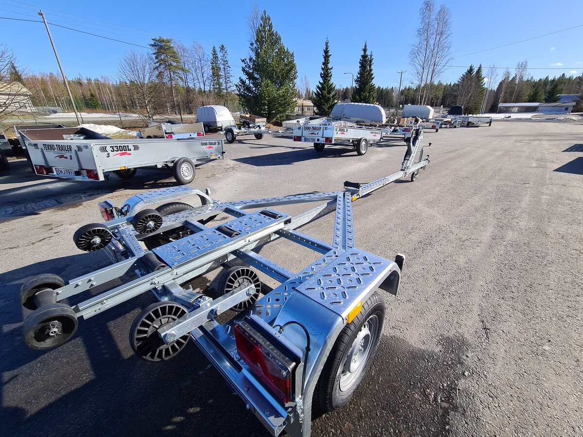 S-malliston venetraileri rankempiinkin kuljetuksiin. Markkinoiden parhaat kulkutasot, karhennukset myös lokasuojien päällä. Valot käännettävissä ylös ilman johtojen ym. irroitusta. Liinavinssi.